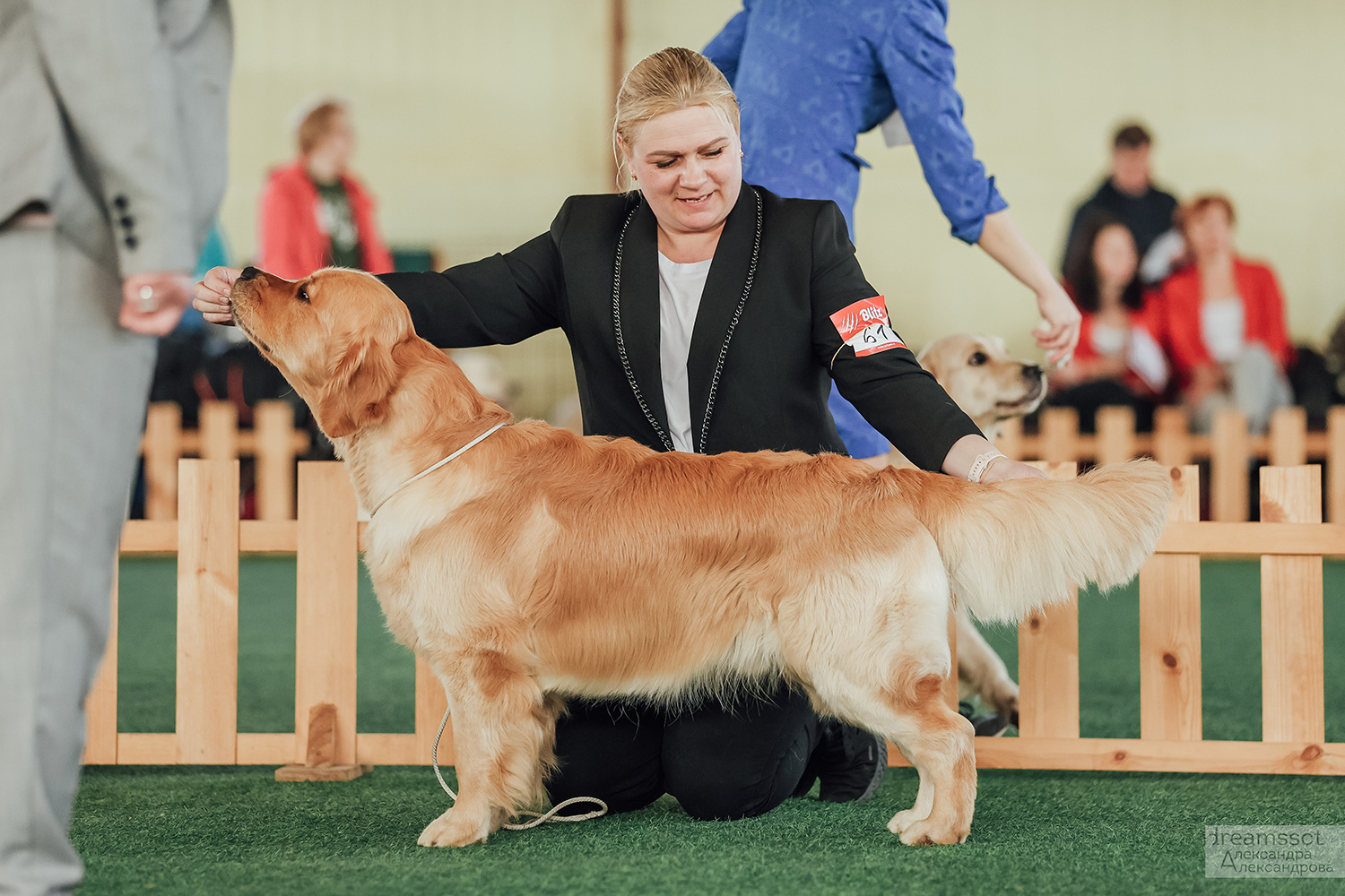 Каждый год в Москве проходит крупнейшая выставка ретриверов, которую проводит клуб РРК. Мне сложно выезжать сейчас с собаками. НО тем не менее, в этот раз три наши собаки приняли участие в выставке. Эксперт — Коробкова.